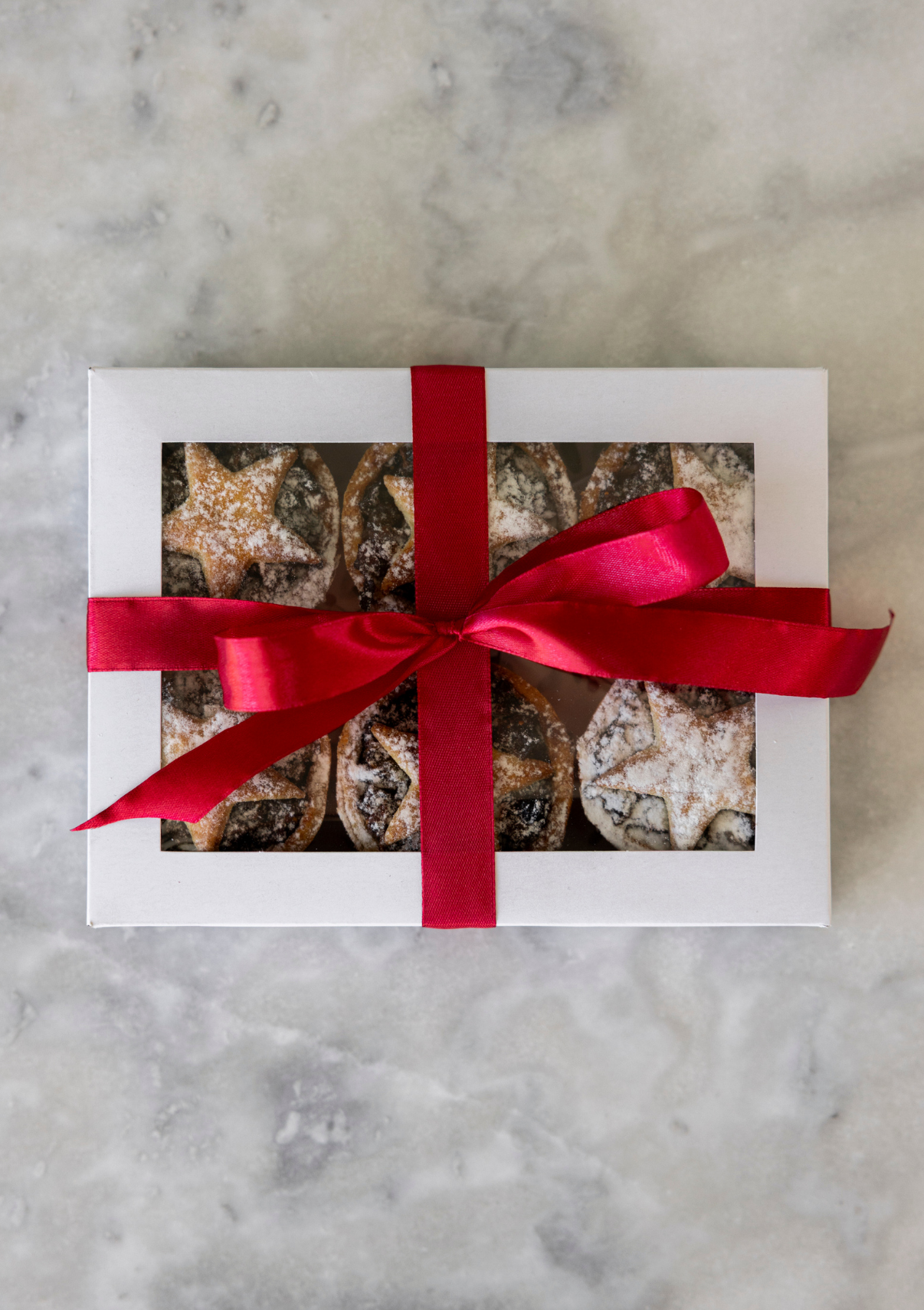 House-made fruit mince wrapped in buttery pastry, filled with spiced fruits and citrus. Available in boxes of 6, 12 or 20.