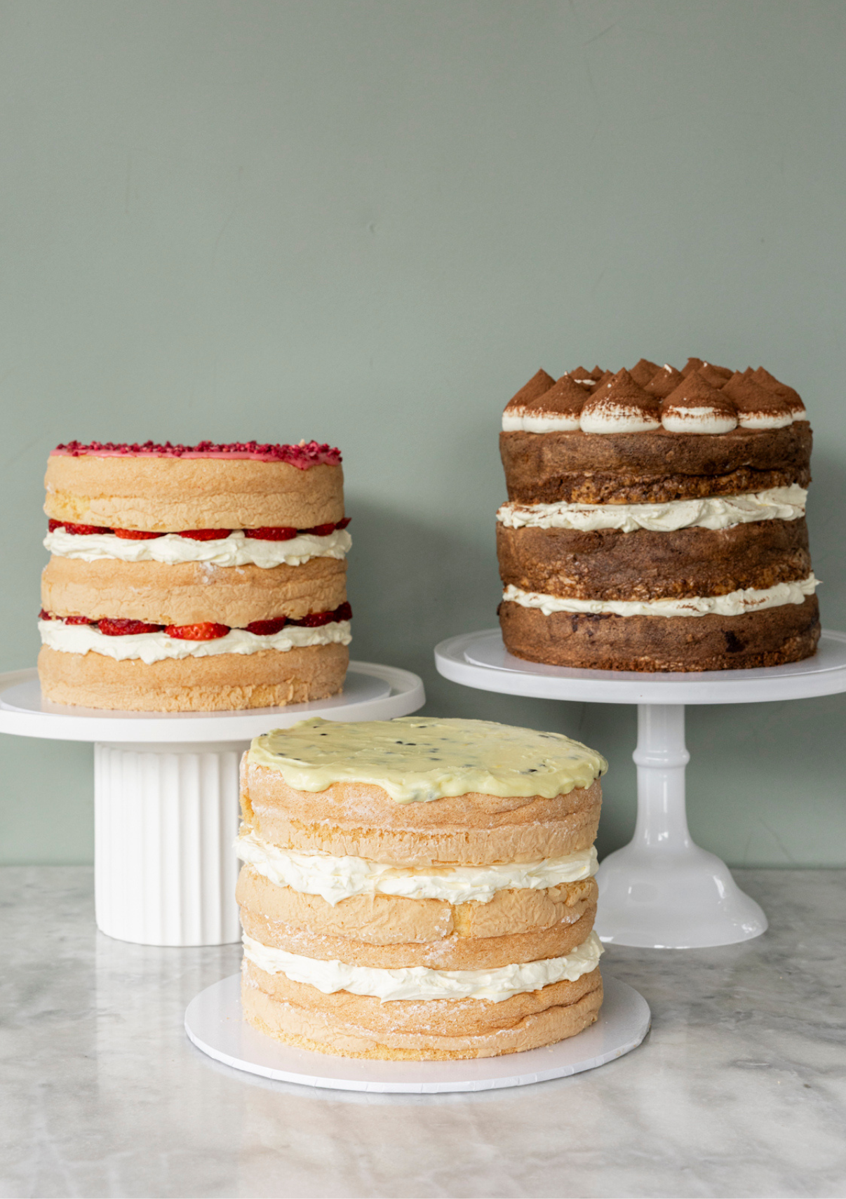 Enjoy a classic old-fashioned sponge cake, CWA style! Choose from three delightful flavours: Passionfruit, Berries and Cream, and Tiramisu. Our soft and pillowy sponge cake is perfectly sandwiched with fresh cream, offering a nostalgic treat for any occasion.